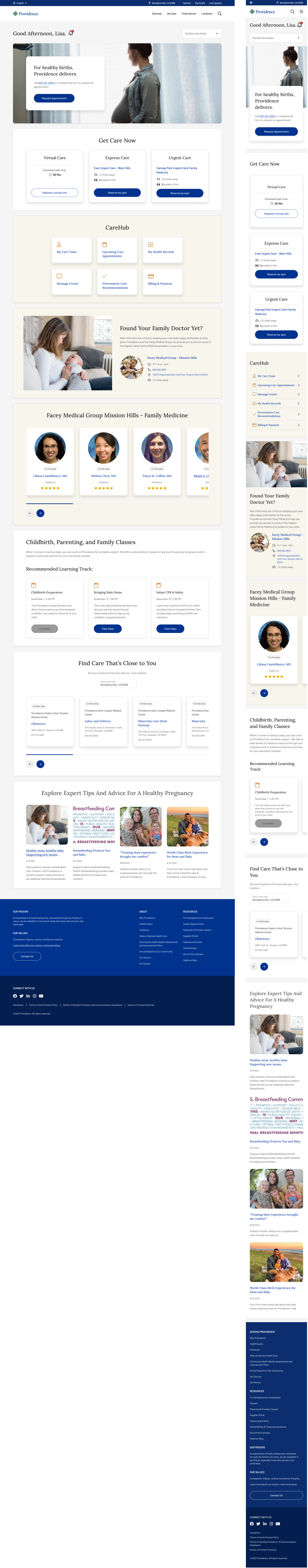 The dedicated page for the personalized dashboard experience is specifically tailored for pregnant women in their healthcare journey, providing them with content and AI recommendations relevant to their needs. This page served as a user testing platform to gauge whether users would be interested in such a tailored experience. Stakeholders wanted to test this theory.